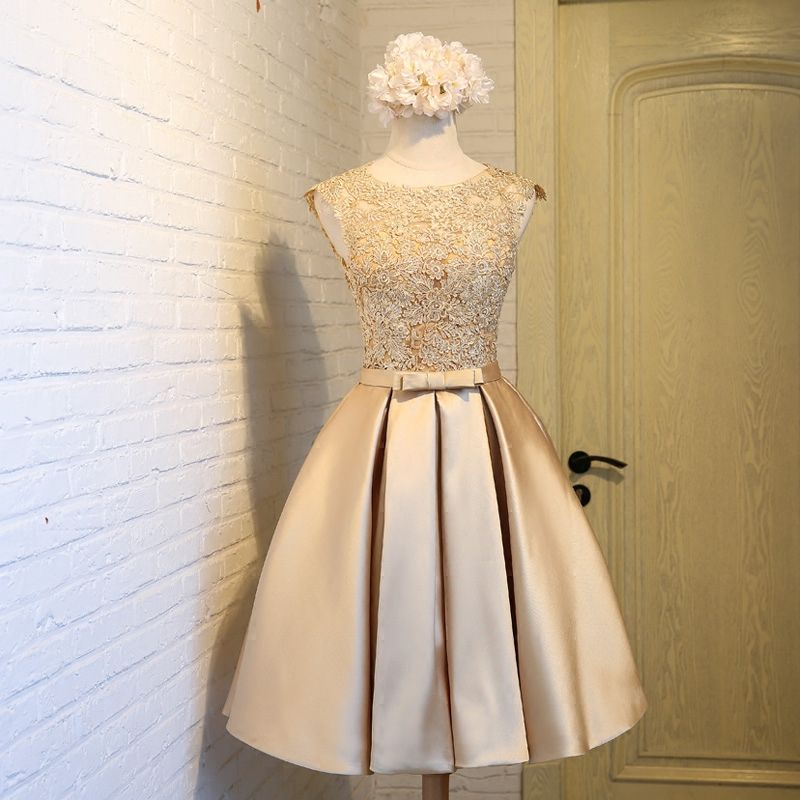 Short Ball Gown Bridesmaid Dress Gold Satin Party Dresses Knee Length Wedding Guest Dresses With Bow Discount Bridesmaid Dresses Under 50 Fun Bridesmaid Dresses From Evenwedding 50 4 Dhgate Com